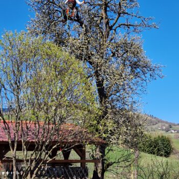 Poobede sa arboristi presunuli k dvom hruškám a jabloni. Všetky tri dreviny napriek vysokému veku (nad 80 rokov) stále bohato rodia chutné plody. Počas rastu neboli takmer vôbec ošetrované. Veríme, že odborný zásah arboristov im predĺži život a budú ešte dlhé roky tešiť svojich majiteľov a poskytnú „ubytovanie“ mnohým opereným obyvateľom (možno aj vzácnemu strakošovi kolesárovi J)